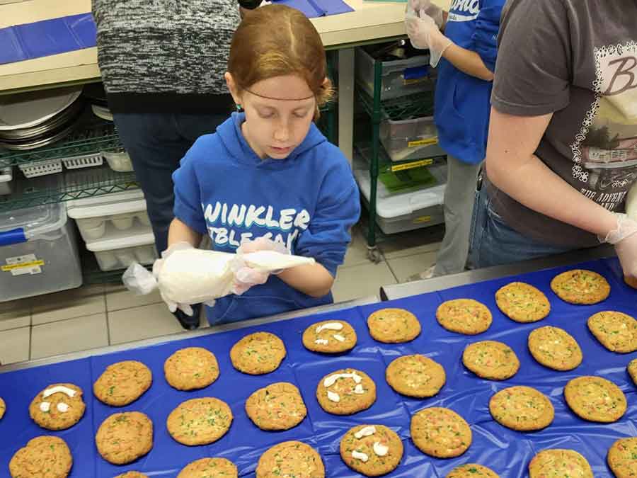 Players spent Sunday afternoon decorating cookies at the Rhineland Pioneer Centre in preparation for their delivery throughout the community. A total of 381 dozen cookies were pre-sold, raising $9,144, which will be split between the Angels and Tim Hortons Foundation Camps.