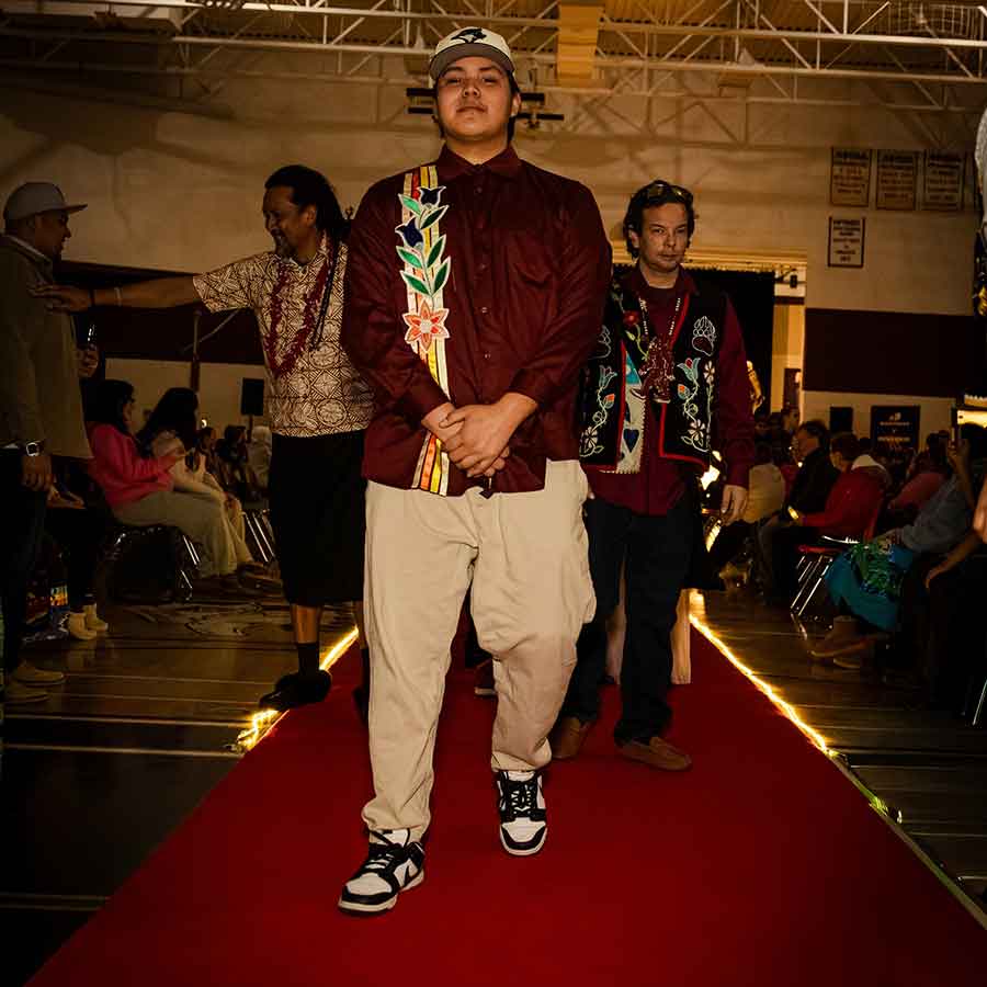 The “First Ever Fashion Show” saw students, community members, and culture walking down the runway, all in partnership with Manitobah Mukluks; a pair of mukluks was gifted to each model to highlight and take home.