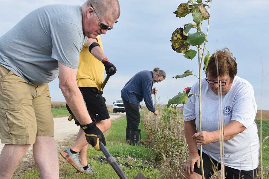 About 50 people showed up the morning of Sept. 30 to help plant over 160 trees along the trail between Altona and Gretna.