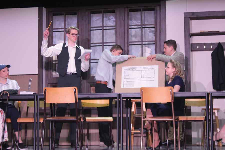 After auditions in September, co-director Hentie Jordaan ended up with the exact number of seriously interested students as there were roles. Everyone got a part, and by what Jordaan called a stroke of luck, they all formed his “dream cast” — a group committed to the production and who slipped into their roles effortlessly. The cast included 14 students and was co-directed by Jordaan, teacher Marsha Bultena, and DCS alumna Megan Bouwers.
