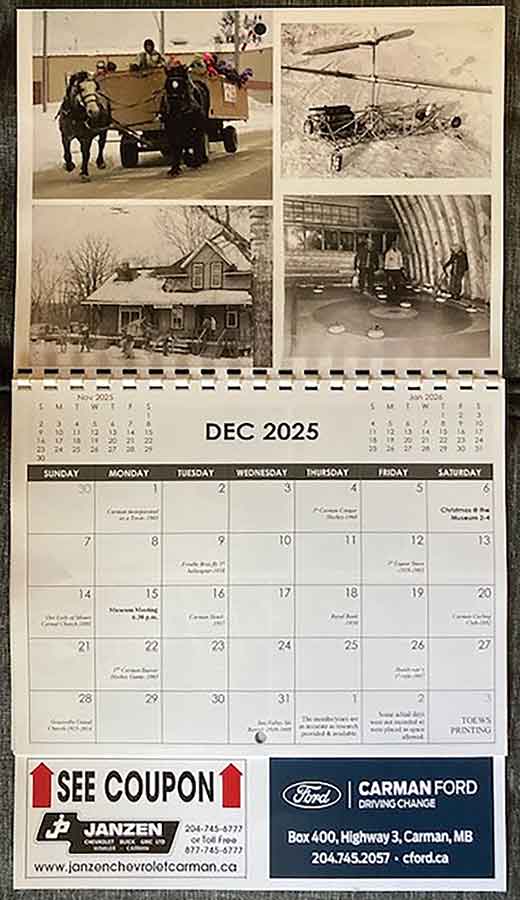 Calendars are selling for $10 and are available at local businesses including Carman Ford, Janzen GMC and Toews Printing. The museum board extended thanks to those businesses for partnering in the effort.