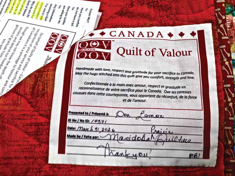“I feel honoured to have received the Quilt of Valour,” Lemon said. “It was unexpected — and I think there are people out there more deserving than I am — but I am proud of this recognition.”