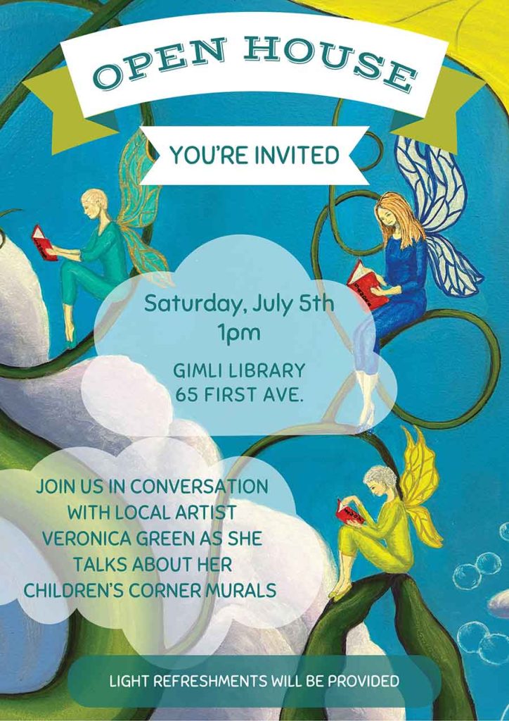 The open house will be held on Saturday, July 5 at 1 p.m. at the Gimli Library at 65 First Street, north of the Lakeview Resort. Light refreshments will be provided.