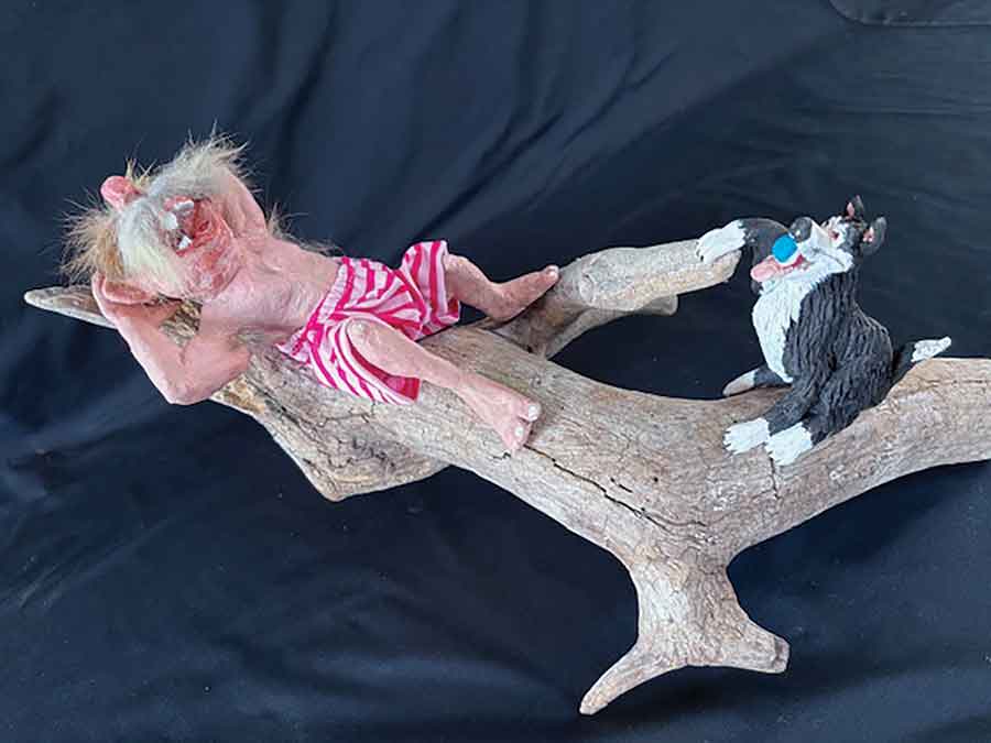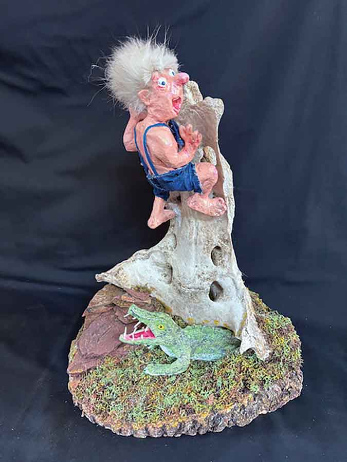 “This year’s Wave’s theme is ‘Imagine,’” said Maryniuk, whose formal artistic training and work as a Winnipeg Police forensic artist (now retired) is borne out in painting, sculpting, cartoons and book-writing. “With this in mind, I created a number of pieces from old cattle bones, gourds, wood, rock and clay.”