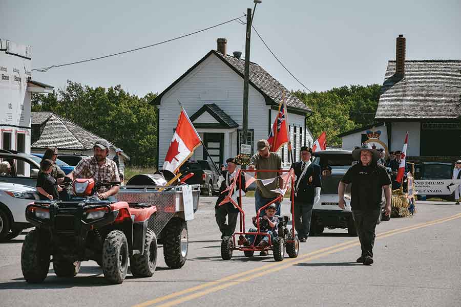 Parade entries honoured long-time contributors, with Ken Windross carrying the Canadian flag and Jamie Christensen and Donal Halldorson Sr. representing the Legion.