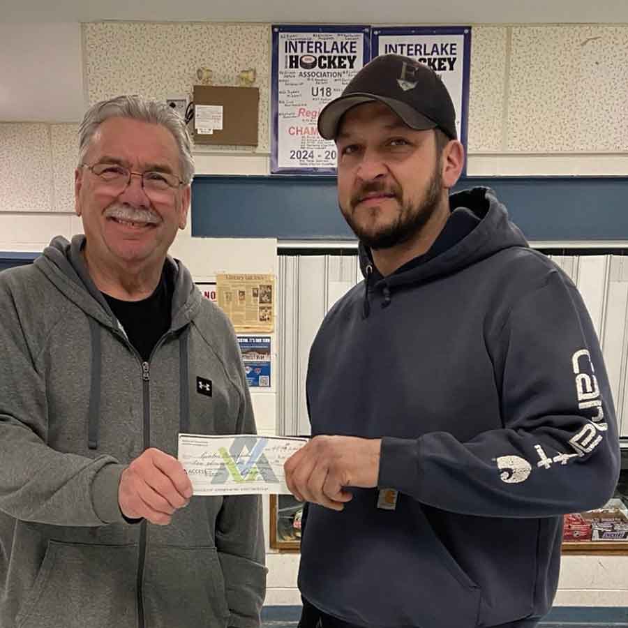 Shane Sigurdson and Wayne Furgala accepting $10,800 for Riverton Minor Hockey