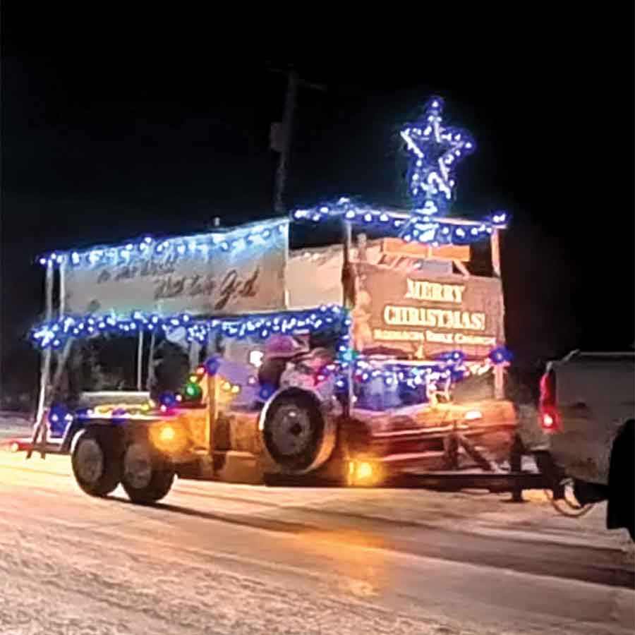 Fisher Branch was aglow on Friday, Dec. 5 with 15 brightly decorated floats that rolled through town during the Winter Wonderland parade.