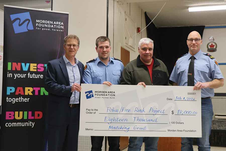 In addition, there was $18,000 in matching funds presented to the Morden Police and Morden Fire departments in connection to their fundraising campaign for upgrades at the outdoor skating rink.