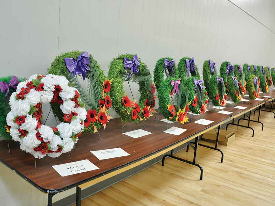 Active and former service members and family and friends laid their wreaths at the front of the hall, paying tribute to the lives lost.