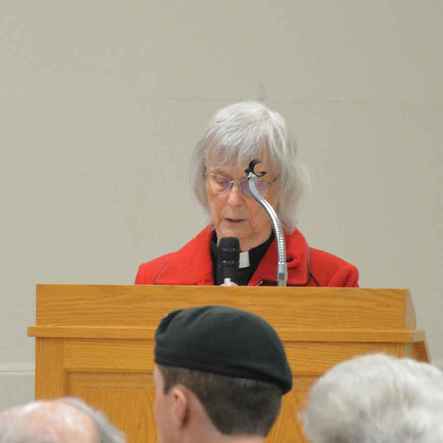 Pastor Claire Speary delivered the Call to Remember and opening prayer to those who attended. She expressed the impact wars had on Canadians.