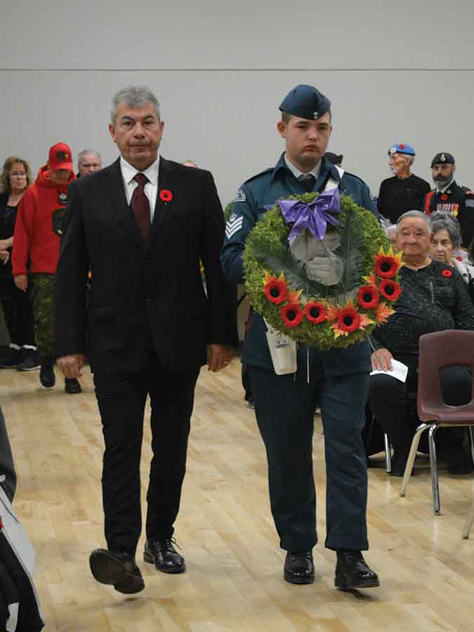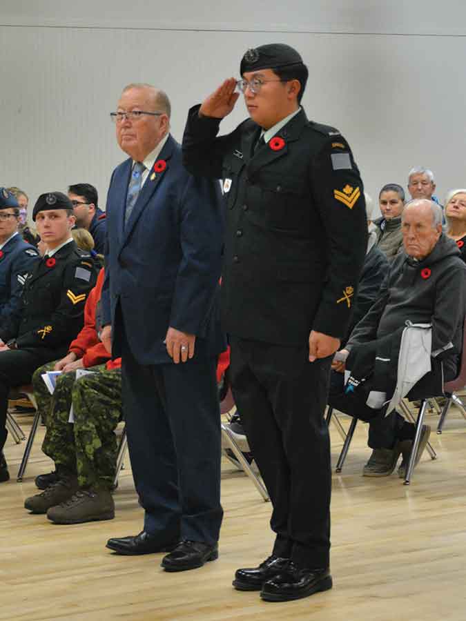 “The two minutes of silence provides another significant way of remembering wartime while thinking of peace. Two minutes are scarcely enough time for thought and reflection. As we pause and bow our heads, we remember those brave men and women who courageously volunteered for the cause of freedom and peace. Just think about that person,” he said. “In the scope of our day-to-day lives, think about how quickly two minutes will pass without even knowing it. And think about what we’re thinking about here today. For those who lived through these wars, remembering means thinking of comrades. Evokes memories of men and women who never returned home. Those born after the wars might picture the youthful soldiers who eagerly joined up from high schools, businesses and farms across the country, only to meet death while fighting against the enemy. They may imagine the anguish of a man leaving a new wife, a young family, an elderly mother. The important thing for all of us to remember is that they fought to preserve a way of life, Canadian values and the freedom we enjoy today and often take for granted.”