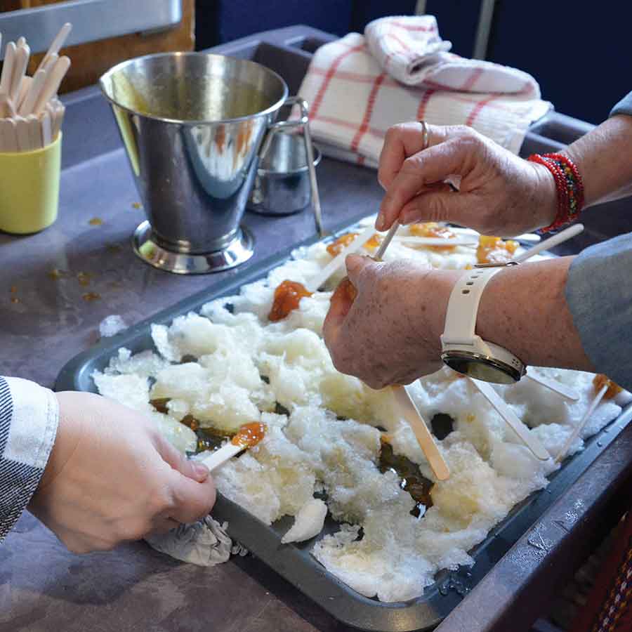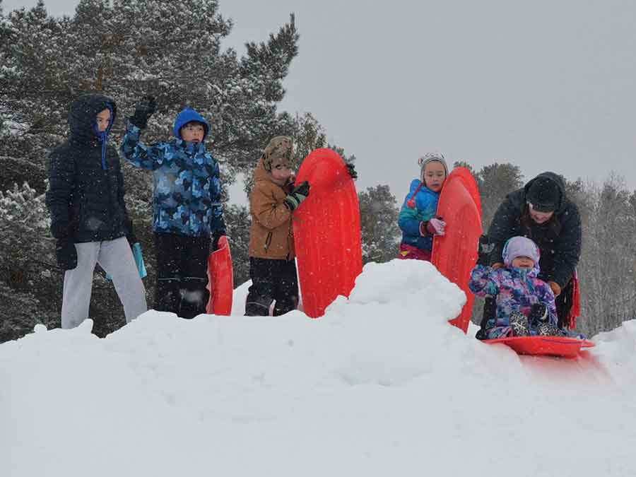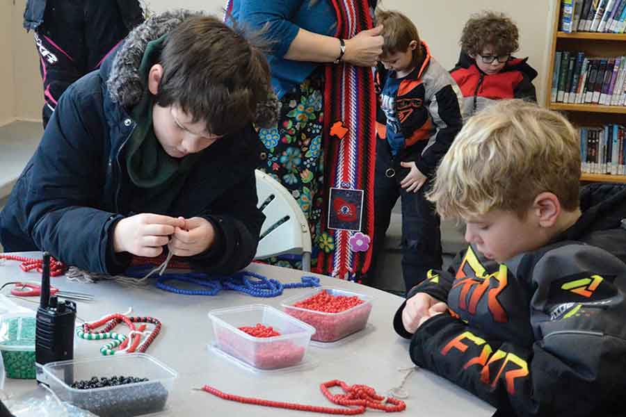 In celebration of the Festival du Voyageur, Walter Whyte School students learned about the traditions of the voyageurs and their families and also had some fun outside with some winter activities. Students did some sledding, ate some maple taffy, and learned about beading.