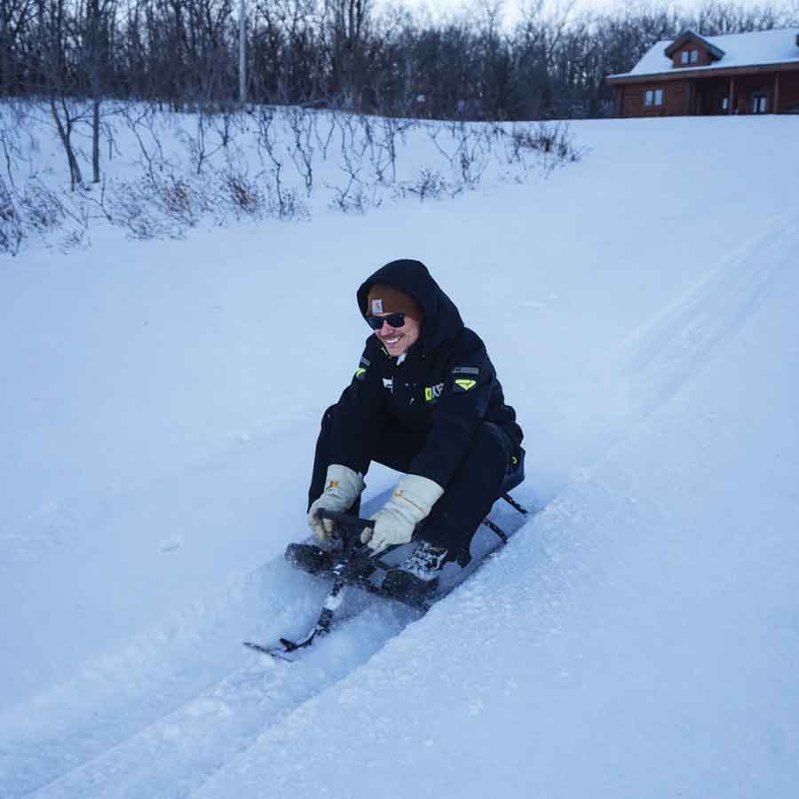 Gabriel Reece tries out his Stiga GT King Size two-person winter race sled on Mount Nebo, where deep snow made for more effort than airtime.