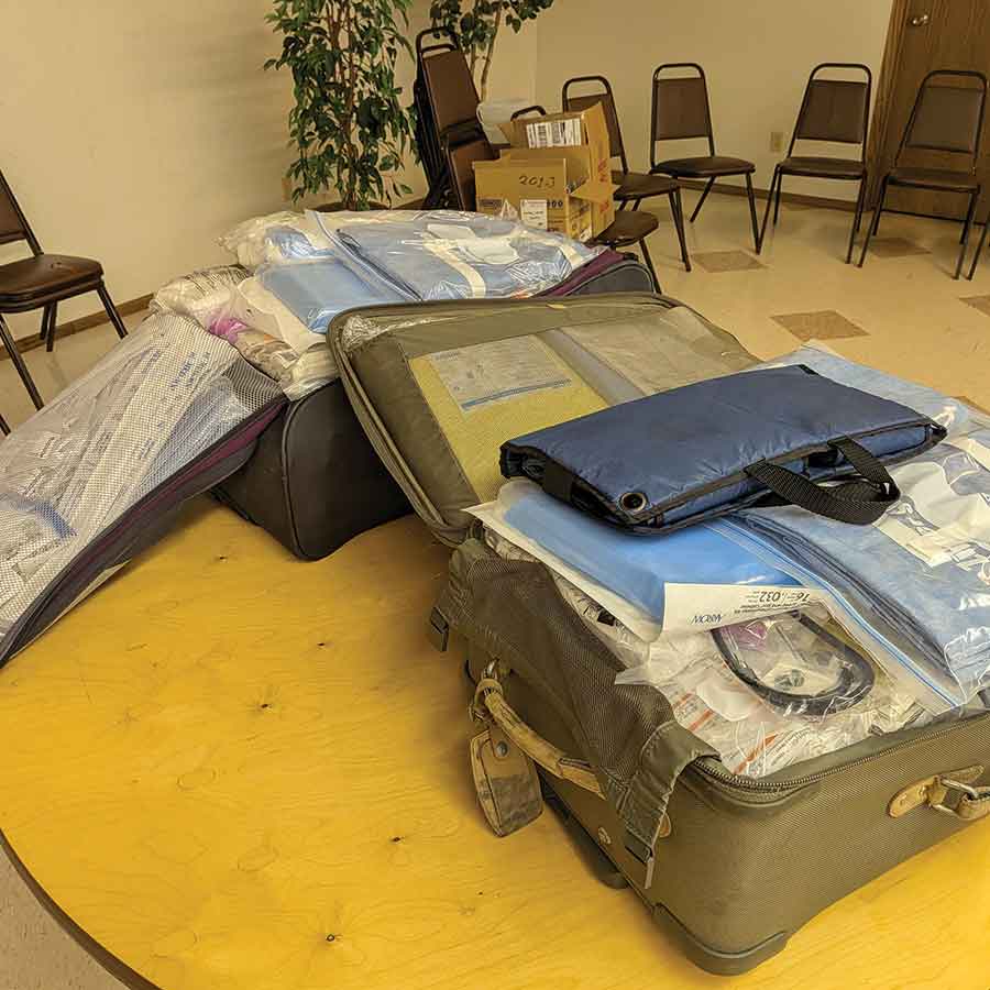 In addition to medical supplies, they could also use donations of new or gently used suitcases to help people carry the supplies to their destinations. They’ve even used old hockey bags before