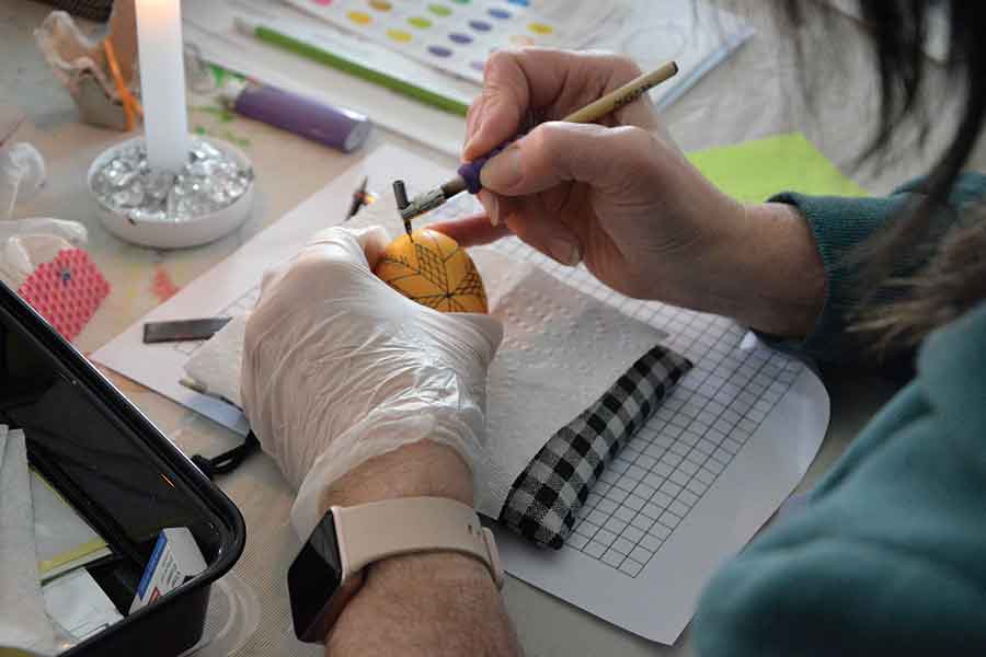 Professional pysanky artist Loris Sargeant recently hosted a pysanky making workshop at the St. Andrews Heritage Centre. The creation of pysanky or Ukrainian Easter eggs is a Ukrainian tradition that takes place every spring.  Sargeant learned how to make pysanky from her mother and is now passing the traditional knowledge onward.