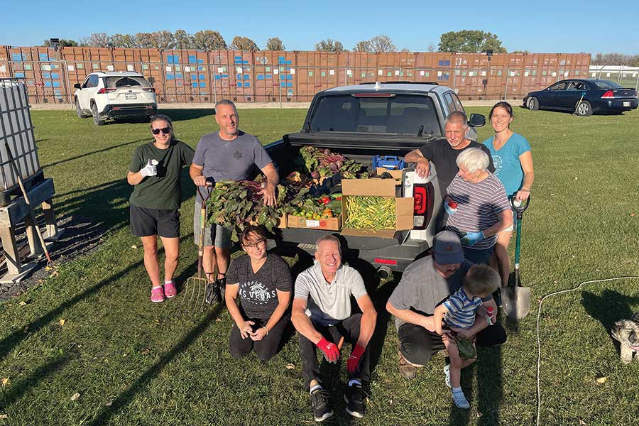 This year’s Selkirk and District Rotary Club and Red Bomb Fireworks garden was once again a huge success in providing fresh produce to those in our community. Despite a dry start to the summer and smoky weather, 315lbs of vegetables were grown. Rotarians put in the hard work early on, watering the crops every second day until the rain finally came. Donations were split between Our Daily Bread Soup Kitchen, which received donations of vegetables throughout the summer, and the Selkirk Food Bank, which received a large donation of 159 lbs of delicious locally grown vegetables on Oct. 6. The Rotary Club’s voluteers as well as Red Bomb Fireworks, who provided the land, tilling, and water for the garden during the summer season are the reason this was able to happen. Over the past five years, this project has really helped to fight food insecurity with a total of 2692 lbs of food grown. Left: The donation on Oct. 6 with David Thorne, Michele Polinuk, Bethany Debrecen, Dianne Stolar, and from the Selkirk Food Bank, Cathy Moore, and John Peterson. Right: Jillian Shoemaker, Ron Thiede, Wendy Meger, Lee Hanson, Bethany Debrecen, Glen Kostyk, Lorraine Hanson, Dale Klassen and his son Jack.