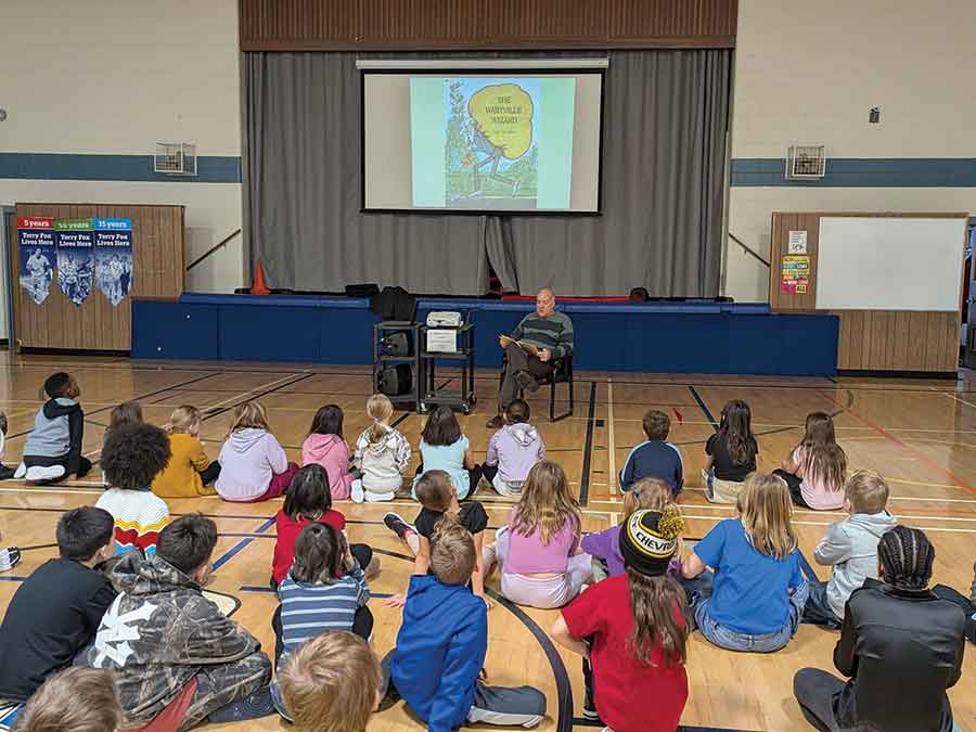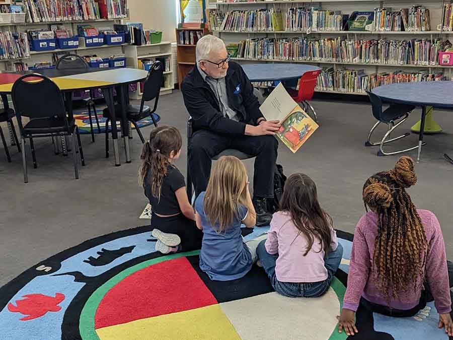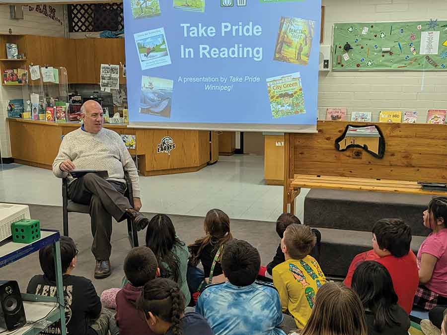 It was a month of extra fun literacy learning in the Lord Selkirk School Division as February was I Love to Read Month. Leaders from all around our community came to Lord Selkirk schools and rounded up the month with reading circles for students. Pictured: A couple of Selkirk Steelers stopped by Ruth Hooker School. LSSD Trustee Jack Bogaski took a turn reading at Ruth Hooker School. Tom Ethans from Take Pride Winnipeg took two stops at Ruth Hooker School and Centennial School, teaching the joy of reading and the importance of helping our Earth by reducing, reusing and recycling litter.