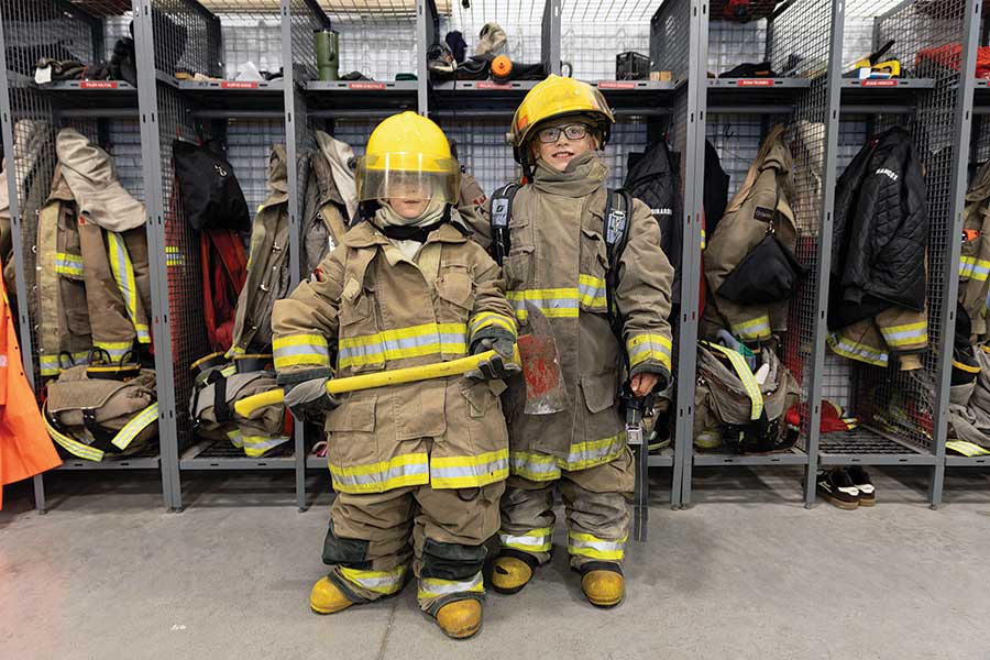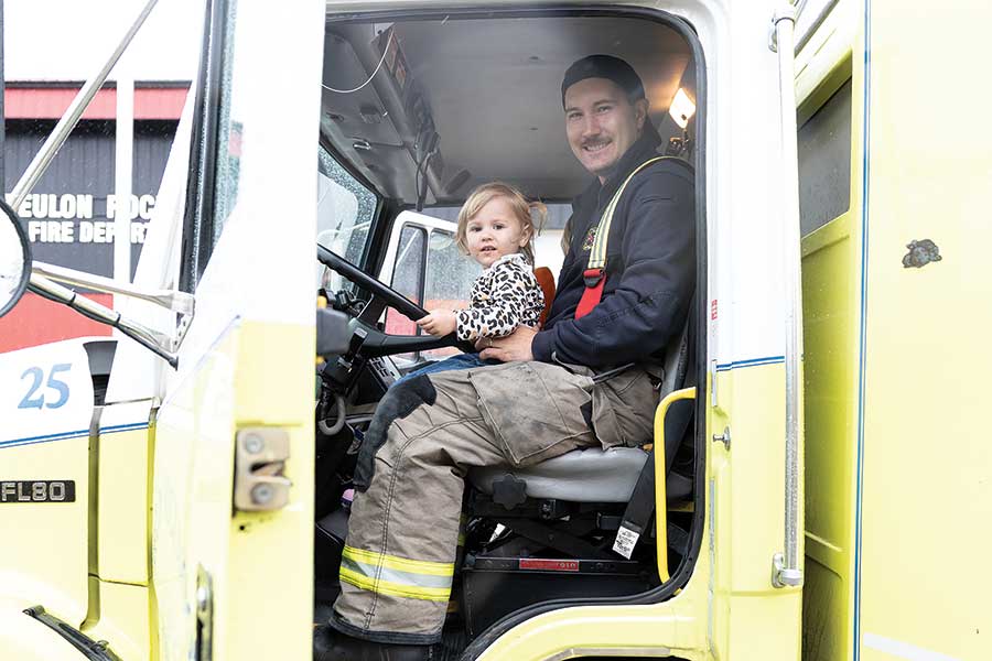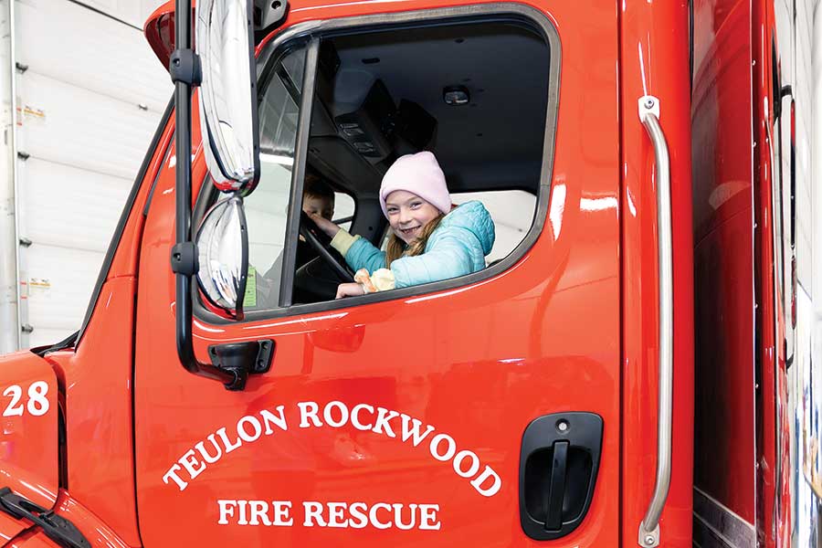 In recognition of Fire Prevention Week, the Teulon-Rockwood Fire Department hosted its annual open house last Sunday. Sparky the Fire Dog and firefighters demonstrated lifesaving equipment and answered questions about the department’s services. Guests enjoyed rides in a fire truck and the crew’s famous French fries and hot dogs. Pictured left to right, clockwise from top: Joan Trombo, Sparky and Shirley Stewart share their fries; firefighter Wyatt Hancox oversees Ezra Emms as he operates the Jaws of Life; brothers Levi and Jacob Kroeker dress in the turnout gear worn by their dad, Nolan, on emergency calls; Matt Halldorson gets help in the driver’s seat from his daughter Abby; firefighter Amy Hugill helps herself to fries; Kellan Good with his dad, Captain Curtis Good; and Lauren Podaima checks out the driver’s seat in a fire rescue truck.