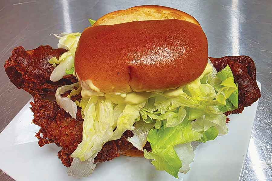 For Allard, her favourite menu item is their pickerel burger featuring a huge fillet dipped in beer batter, fried to perfection, topped with a mountain of shredded iceburg lettuce and smothered in their homemade dill tartar sauce on a toasted brioche bun.