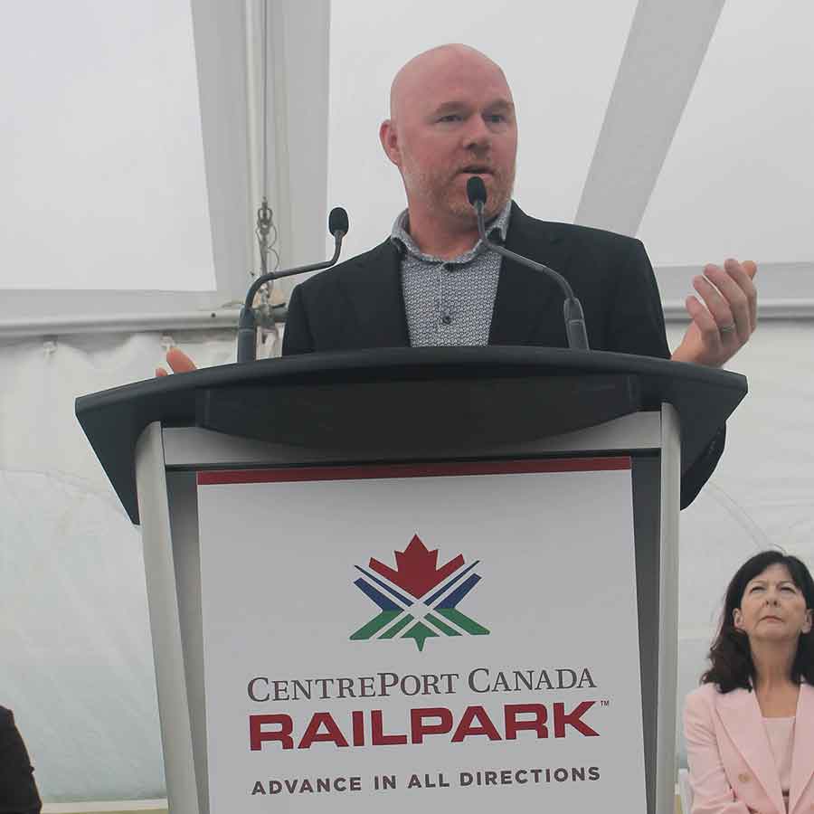 “Just over a year ago, we gathered here to announce the first tenant in the rail park. As you can see, the facility is now nearing completion. Every day, we are witnessing the incredible progress across the CentrePort land in Rosser. We know the significant growth that we are seeing greatly benefits our municipality, the Winnipeg Metro Region and the province of Manitoba as a whole,” he said.