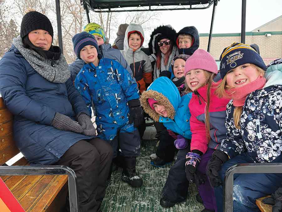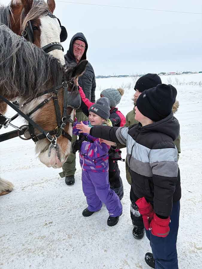 One of the most important pieces of well-being is connection, and that was the focus on Feb. 4. Kindergarten to Grade 4 students experienced the joy of a wagon ride through town, horse-powered by Kyle and Chex from KB Clydesdales and driven by the “wagon crew” of Keith, Janice, Jordan and Brad. Meanwhile, students in grades 5 to 8 spent the afternoon connecting with neighbouring Stonewall, enjoying sledding adventures at Jimms Hill in Quarry Park. The staff and students at Warren Elementary are incredibly grateful for their strong school community, as well as the supportive neighbouring communities that make experiences like this possible.