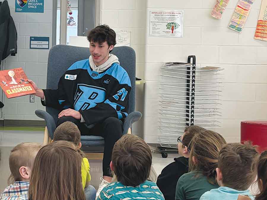 A number of players from the Winnipeg Blues visited Woodlands School during I Love to Read Month, taking time out of their MJHL season to read with local students.