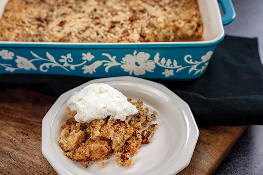 In bowl, mix pumpkin, evaporated milk, brown sugar, eggs, pumpkin spice and cinnamon. Pour into greased 9-by-11-inch baking dish.