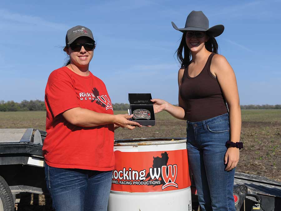 The Rocking W Ranch held its Bean Field Barrel Race Sept. 27, welcoming riders from all over to compete in a Pendleton-style race. Inspired by the professional rodeo held annually in Oregon, a Pendleton racing pattern is three times the size of a normal barrel race. Bailey Martens (right) and her horse Honey were the day’s big winners with a time of 29.464.