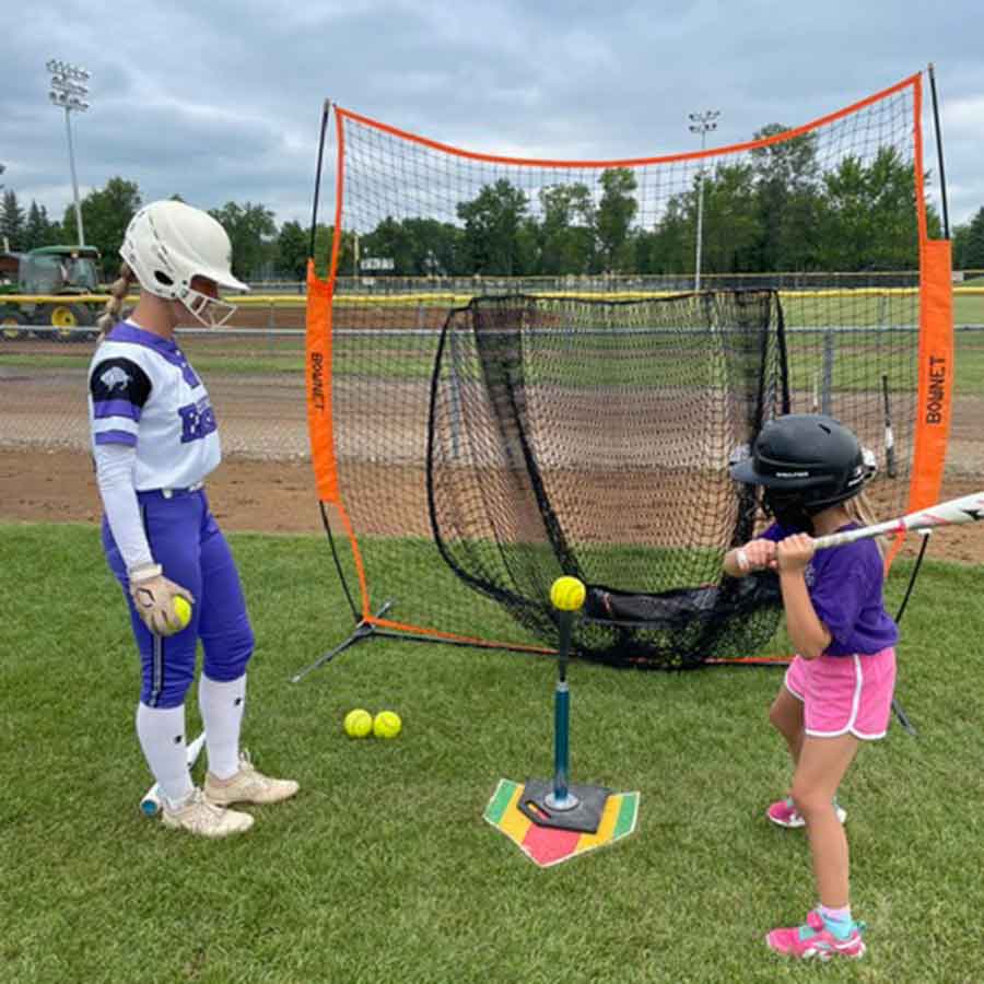 “We welcomed them onto the field, we did a little welcome cheer, and then we split up into groups,” Convery explained. “The younger kids got to do base running, hitting, throwing, and fielding ground balls with the older girls. They showed them some techniques and talked to them about how to hold a bat, how to swing a bat.”